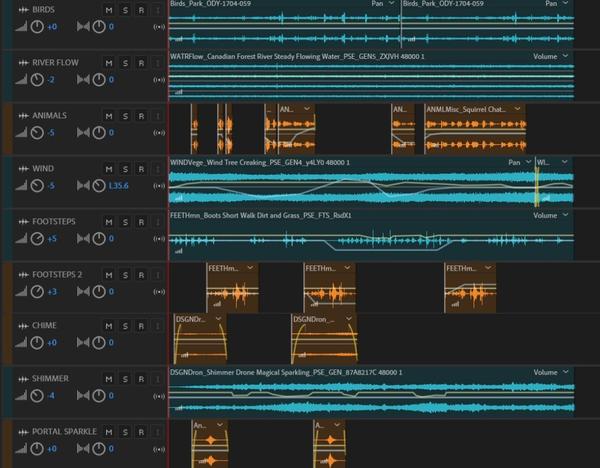 This project was to create a soundscape for the corresponding concept art. Before going into creating the soundscape I had to find out what effects I needed to add to make it accurate to the picture. River flowing sounds, tree rustling and the animals walking on grass and dirt were the first thing I identified. I decided to add wind sounds to create more dept into the soundtrack. To encapsulate the magical aspect of the piece, I first thought of twinkling effects.